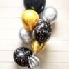 Comes with 1 x champagne bottle super shape, 1 x crown super shape, 2 x 18 inch confetti, 2 chrome gold, 2 x chrome blue, 3 x metallic blue, 3 x pearl light blue, 4 x champagne latex, 3 pastel blue and 2 weights.