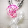 Helium filled 28 inch Boy Confetti Balloon, 1 x 18 inch Star, 1 x 11 confetti balloon, 2 x 11 inch printed balloons, 1 x 11 inch Chrome Balloons, latex base with water weights.