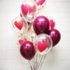 Comes with 1 x clear love super shape, 6 x pink and purple double stuffed heart latex and a weight.